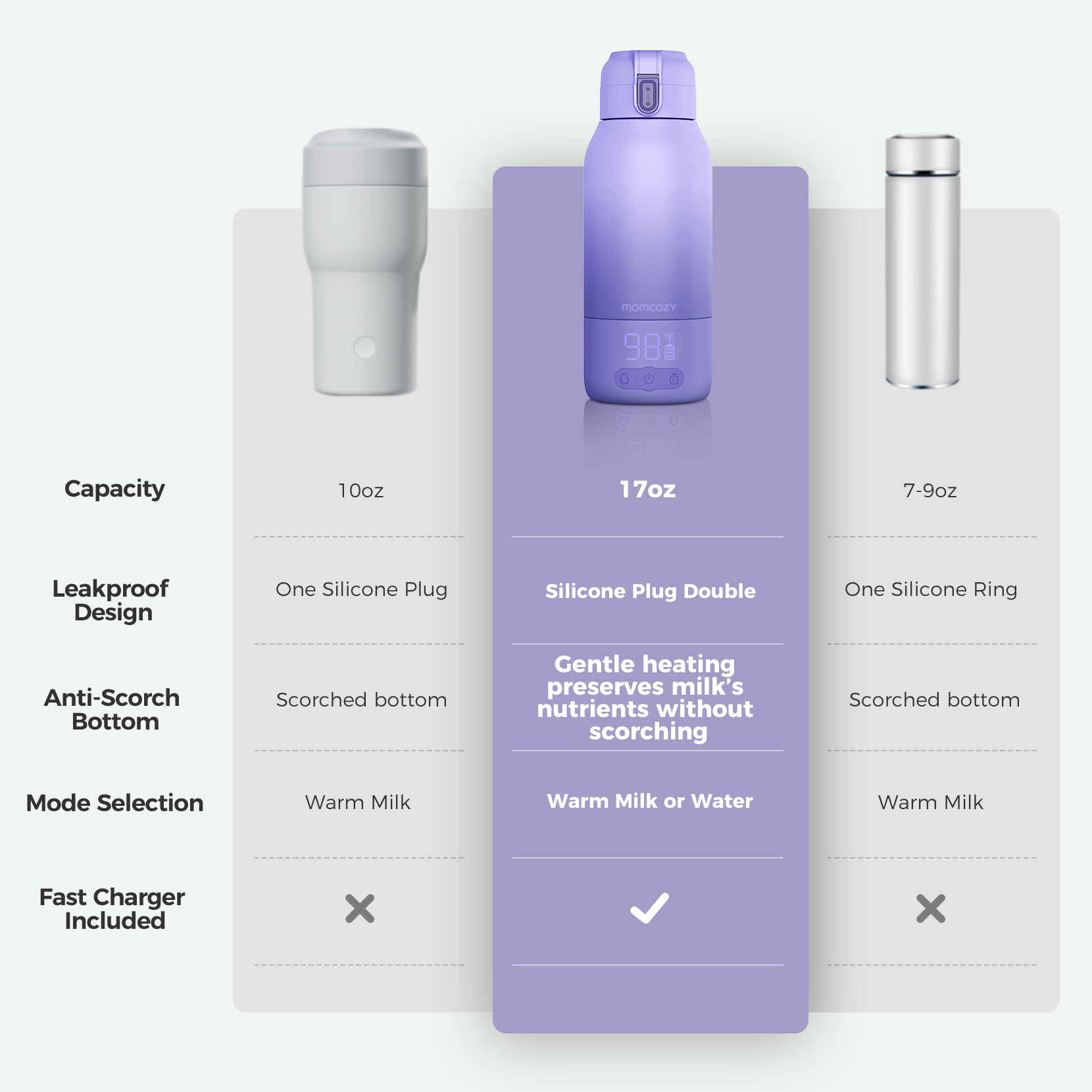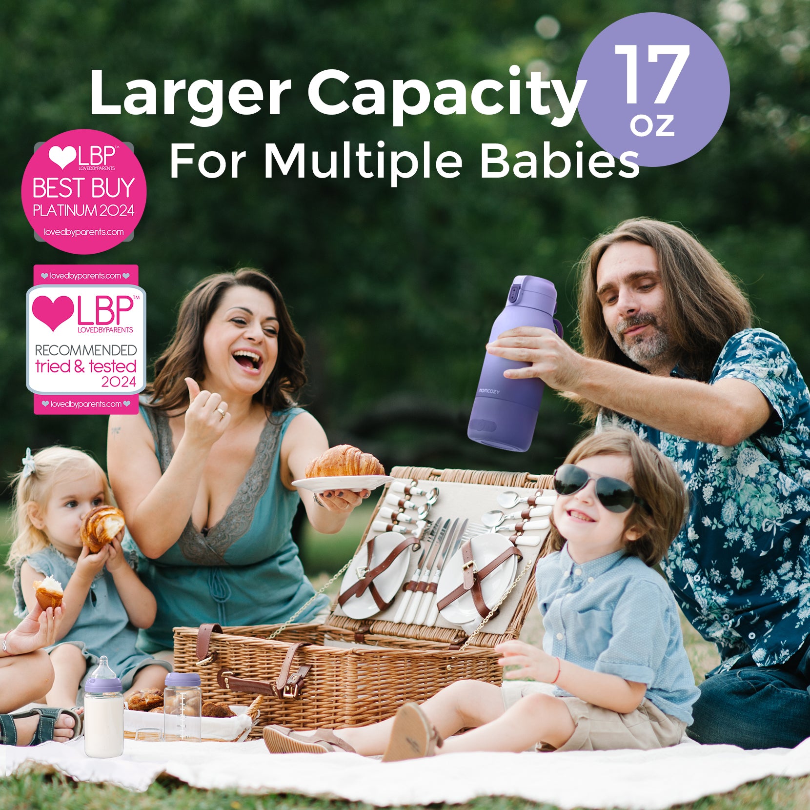 With its generous 17oz capacity, this warmer is ideal for families with multiple babies or those needing more milk throughout the day. Plus, its leak-proof thermos bottle design ensures safe, mess-free storage while traveling.