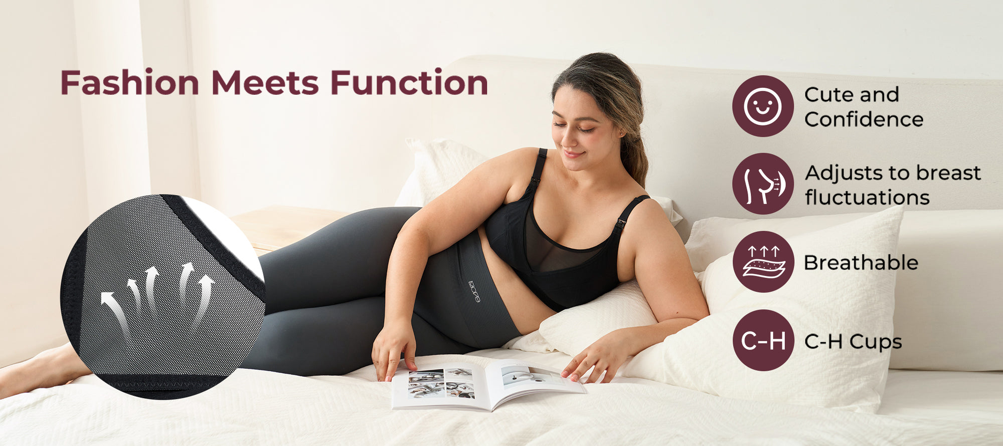 • Elastic and Comfortable Support: Suitable for C-H cup nursing moms. The trendy elastic mesh design fits your daily wardrobe and offers enhanced support for a beautiful shape. The perfect choice for breastfeeding moms whether at home, at work or on the go.