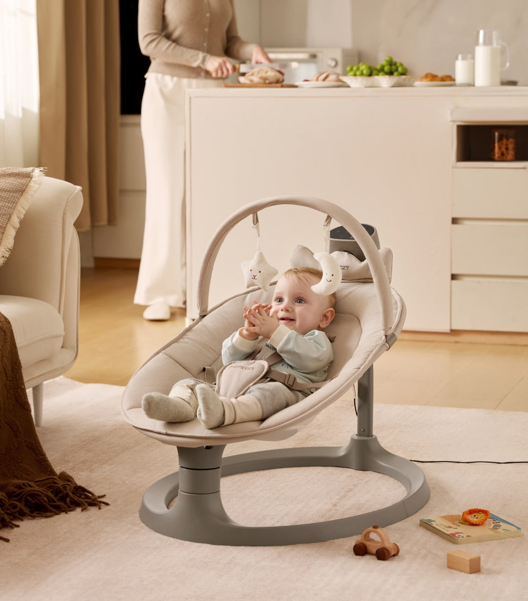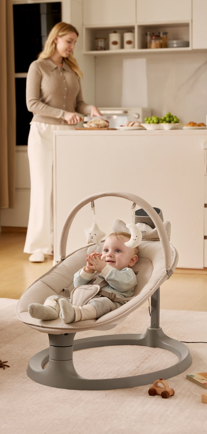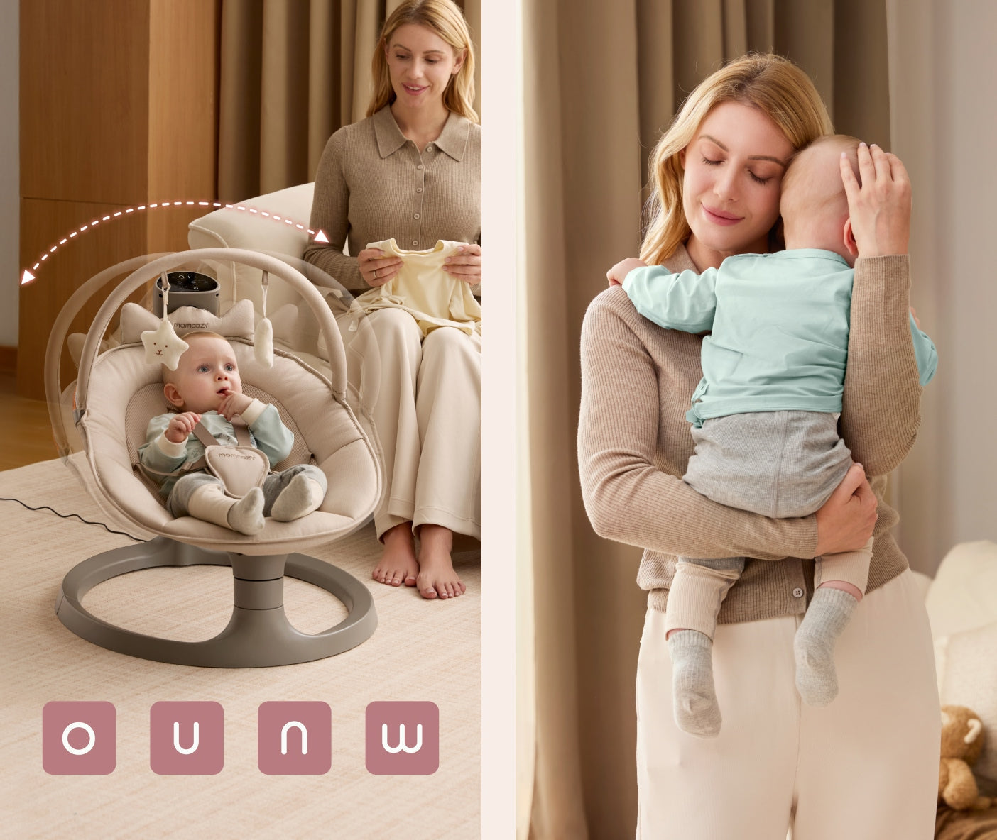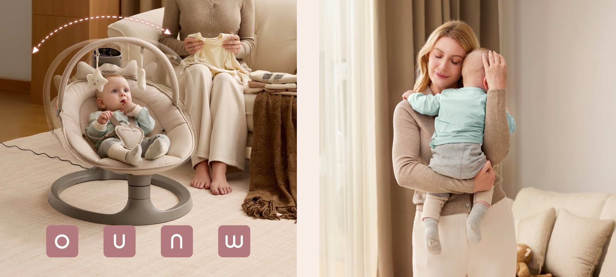 Our baby swing offers 4 swing motions and 4 adjustable swing speeds, mimicking the natural movements and rhythms of your arms to keep baby happy and content.