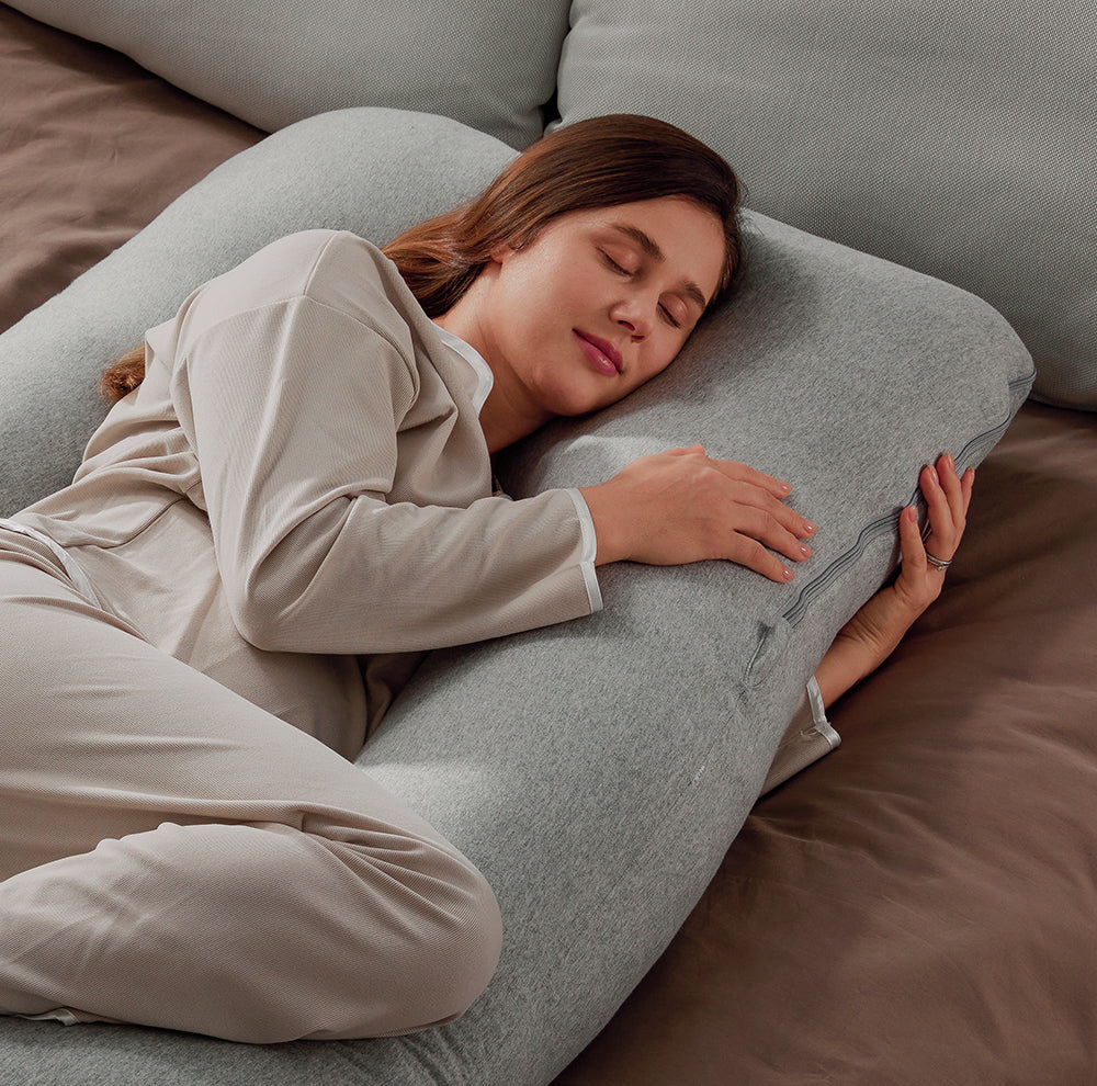 This body pillow fits both side and back sleepers. You don't need to be pregnant to use it! It helps with the discomfort associated with pregnancy, sciatica, fibromyalgia, gastric reflux, back pain, ankle pain, and more.