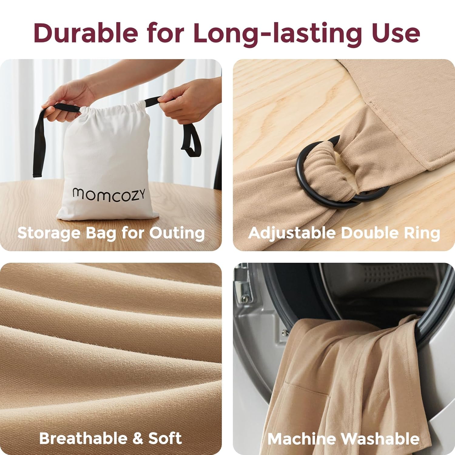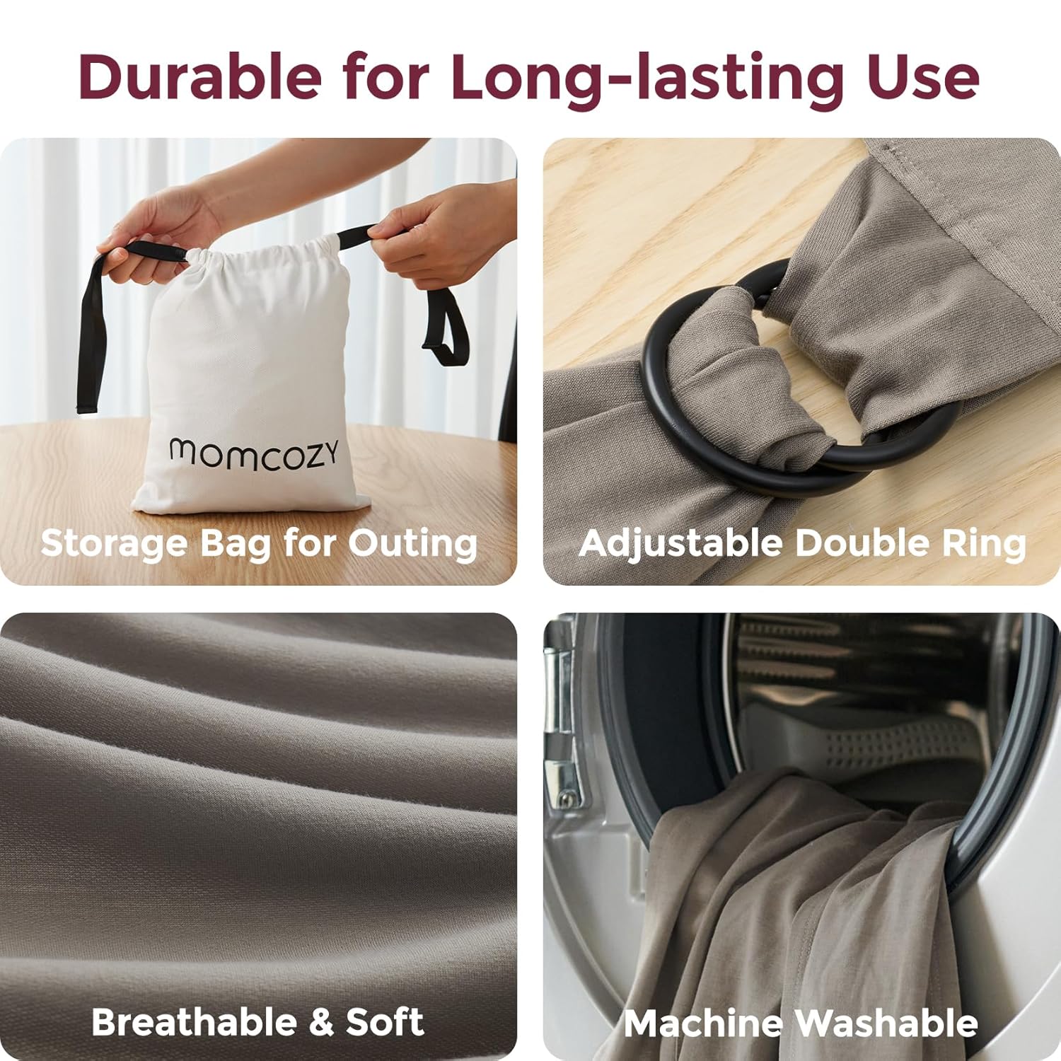 Customers say this baby wrap carrier takes a bit of practice to master at first. Many reviews mention initial confusion with the two-piece design, but note it becomes easier with repeated use. The fabric gets mixed feedback - while most find it soft and stretchy, some note it attracts pet hair and can feel warm during extended wear. Several mention the wrap loosening over time, particularly with heavier babies. Common feedback includes praise for the adjustable fit and hands-free convenience for household tasks. Many appreciate how it helps babies fall asleep quickly when worn. The rings and pre-formed back section make it simpler than traditional wraps, though some find the second piece can slip. Frequent comments address size limitations - while working well for newborns and small infants, several note it becomes less supportive as babies grow heavier. The wrap fits most body types, though some larger users mention challenges getting enough material for a secure fit. Users find it particularly useful for the early months but suggest transitioning to more structured carriers as babies get bigger. The included storage bag and neutral color options receive positive mentions.