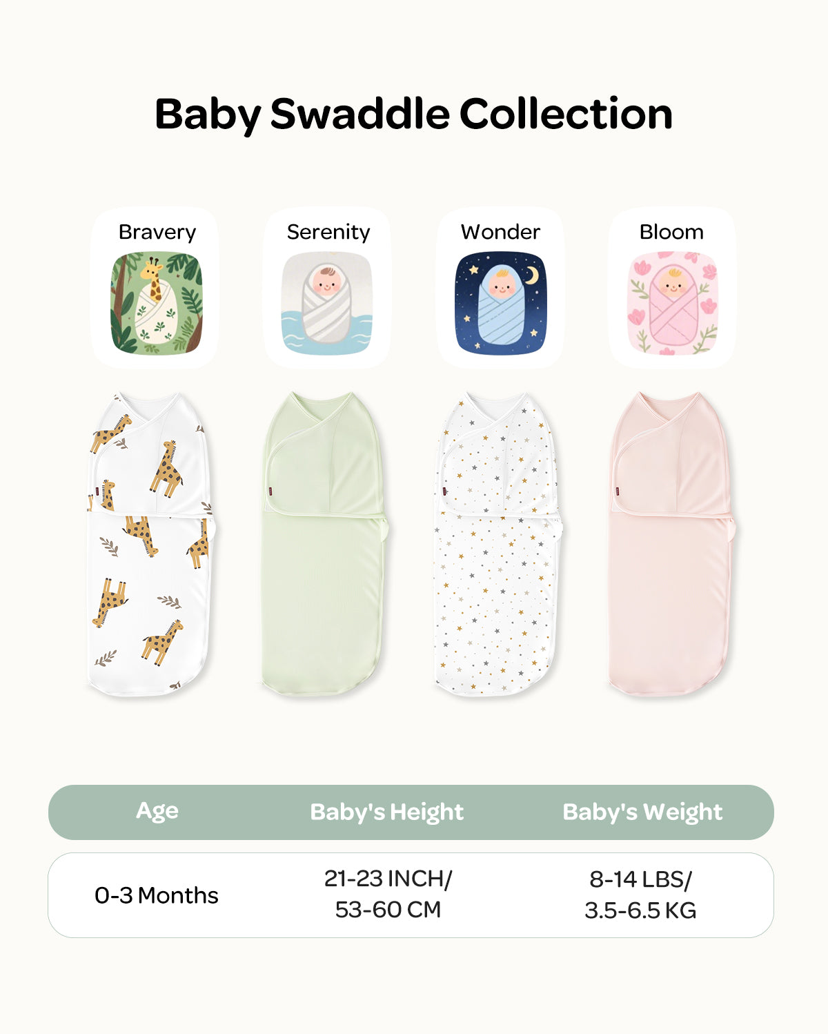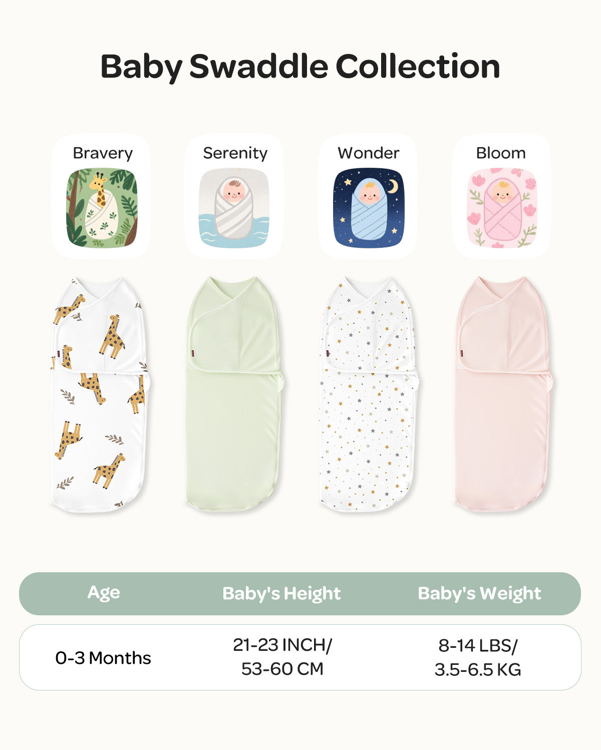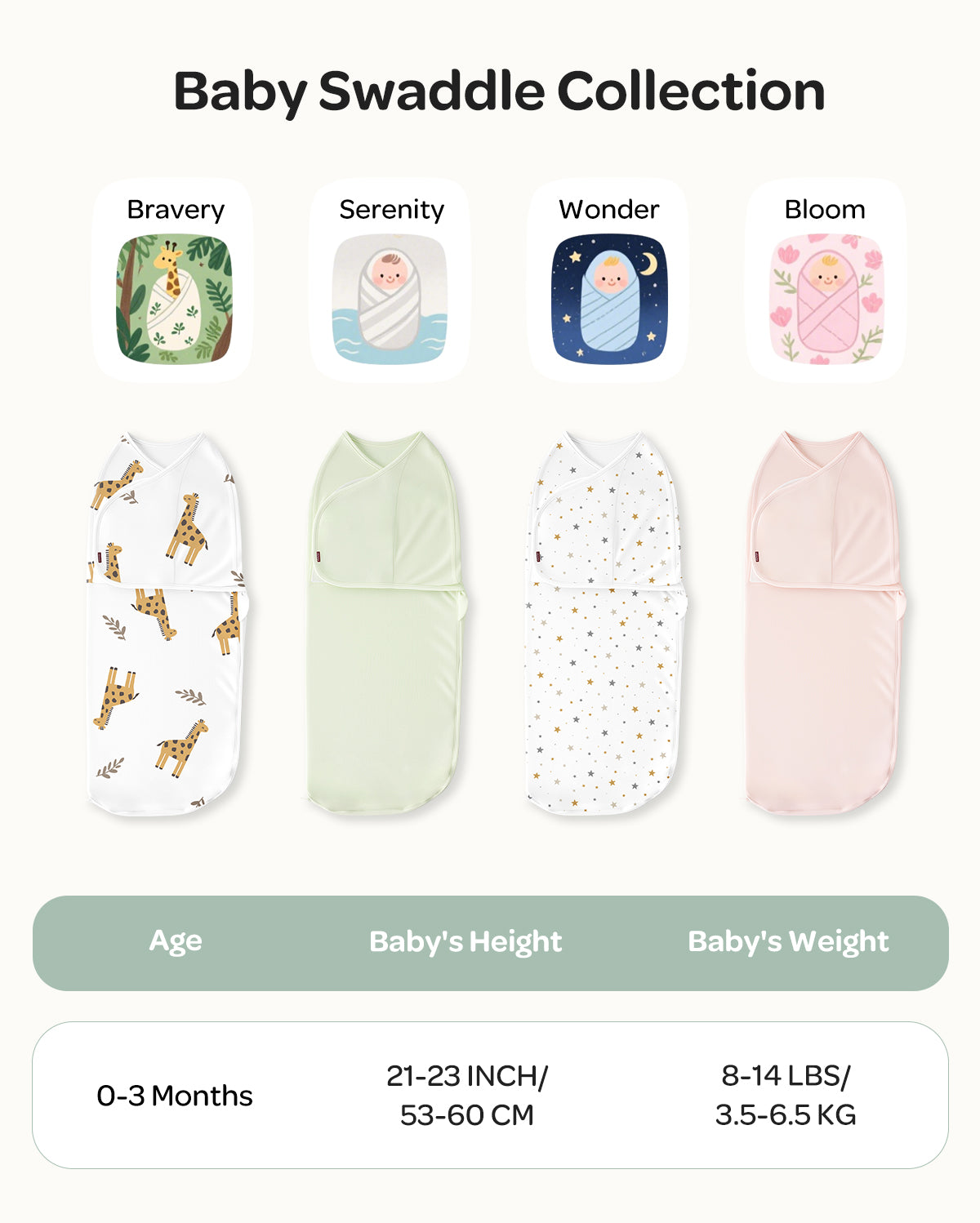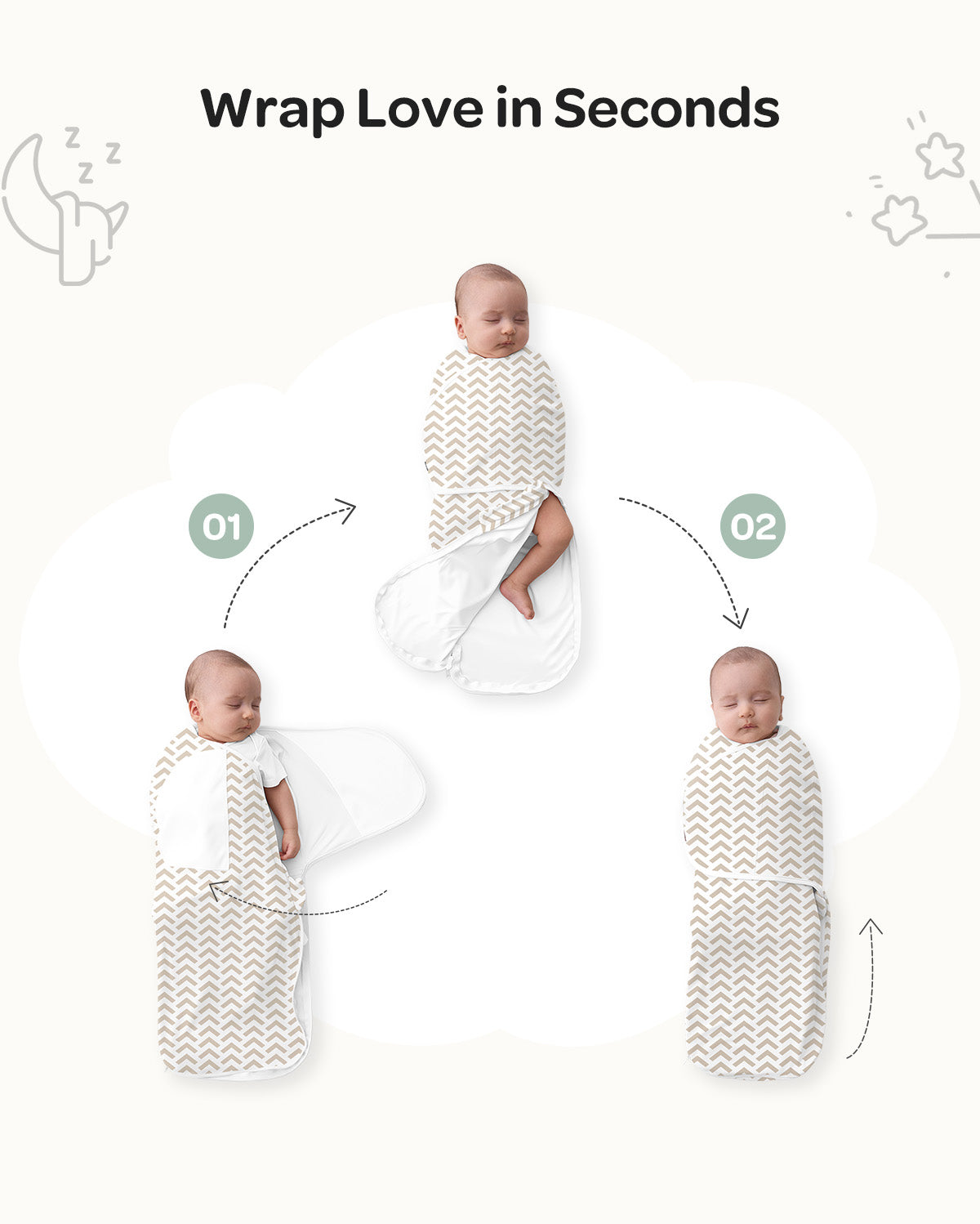 The swaddle wrap's one-piece design provides a comforting, womb-like feeling. The stretchy bamboo fabric and snug fit gently keep your baby's arms close to their body, which helps to reduce the moro (startle) reflex and allows for a more peaceful, restful sleep.