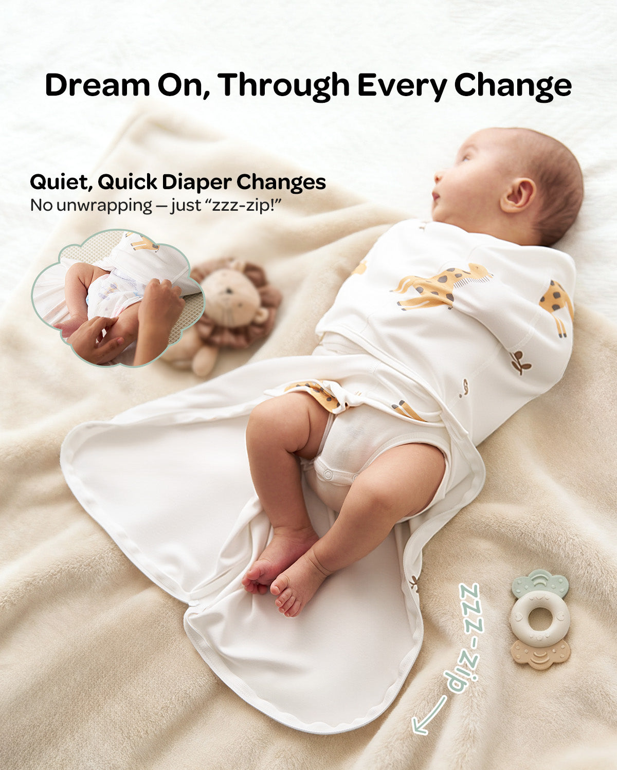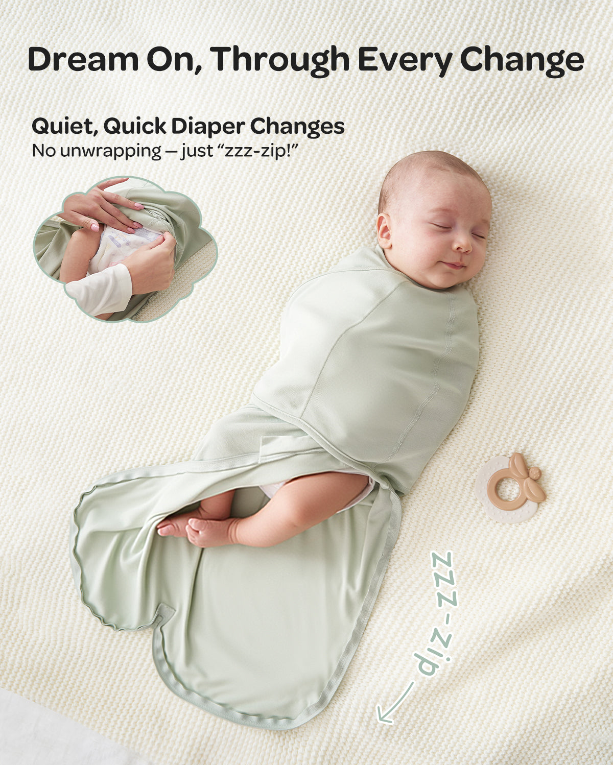 Yes. This swaddle wrap is designed for uninterrupted sleep. It features an ultra-quiet velcro that won't startle your baby, along with a convenient bottom zipper. You can easily unzip the bottom to change diapers quickly and calmly without fully unwrapping your baby.