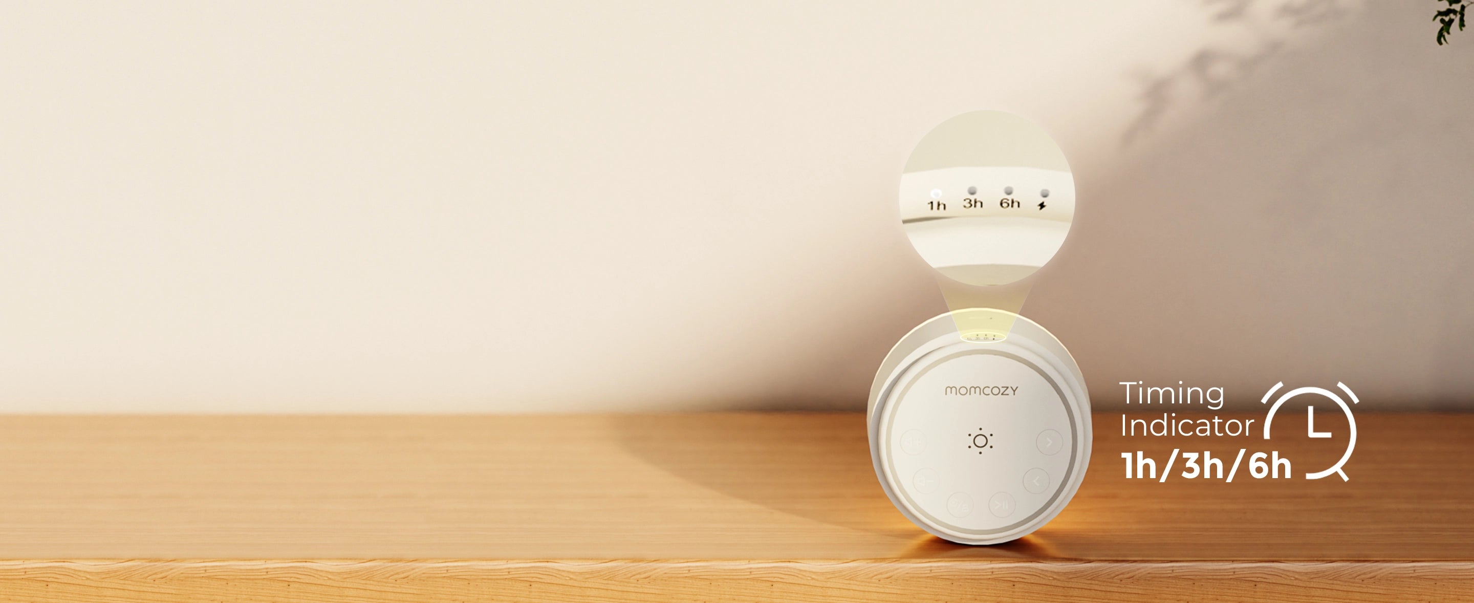 Discover tranquility with the Momcozy white noise machine . Boasting 20 high-fidelity white noise sounds , it effortlessly harmonizes with your sleep routine.Simply touch the top to turn on the light, and long-press to adjust the infinite brightness. With Momcozy, serene nights and refreshed mornings await.