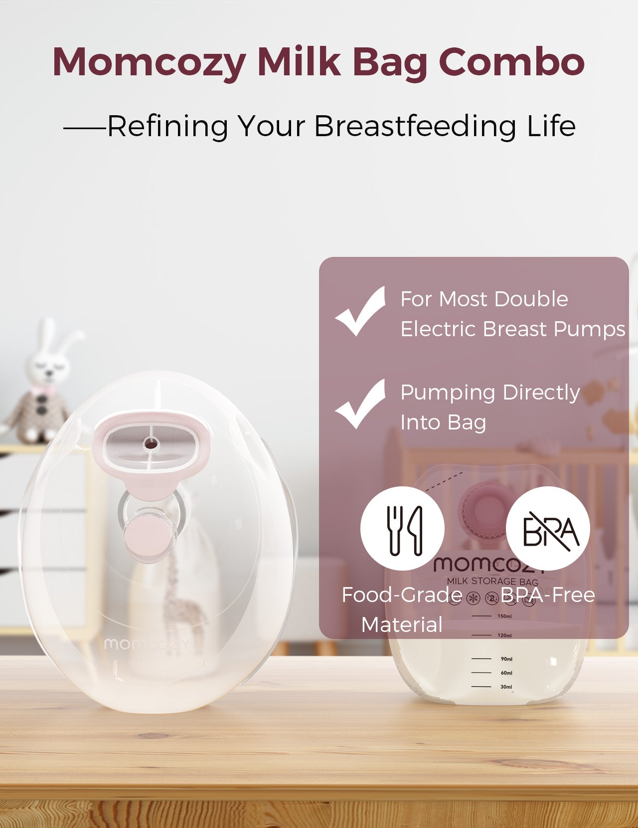 Convenient Milk Storage: With disposable screw-on milk bags designed to prevent leaks, your milk stays fresh and secure, providing a hassle-free solution for busy moms.