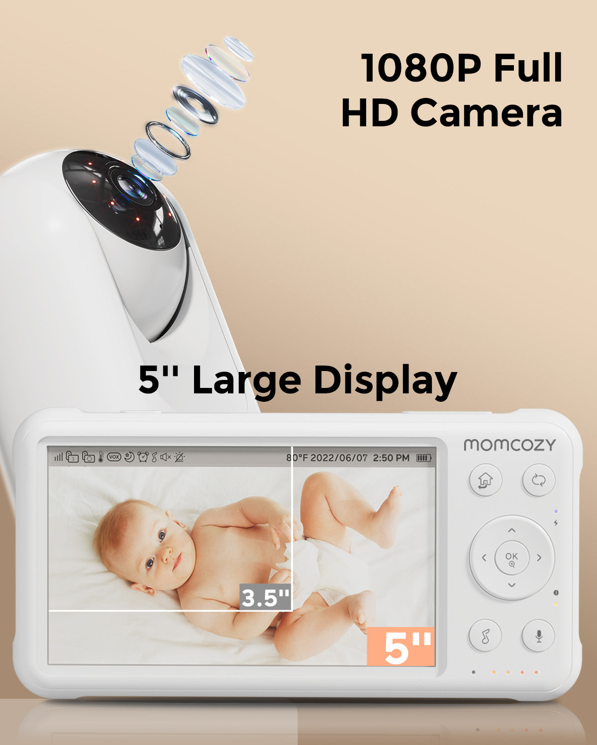 The 1080p full HD camera & 5'' large display allow you to view clearly everything your baby is up to. You shall never miss a moment that doesn't feel right while also catching those precious moments of your cutie pie.