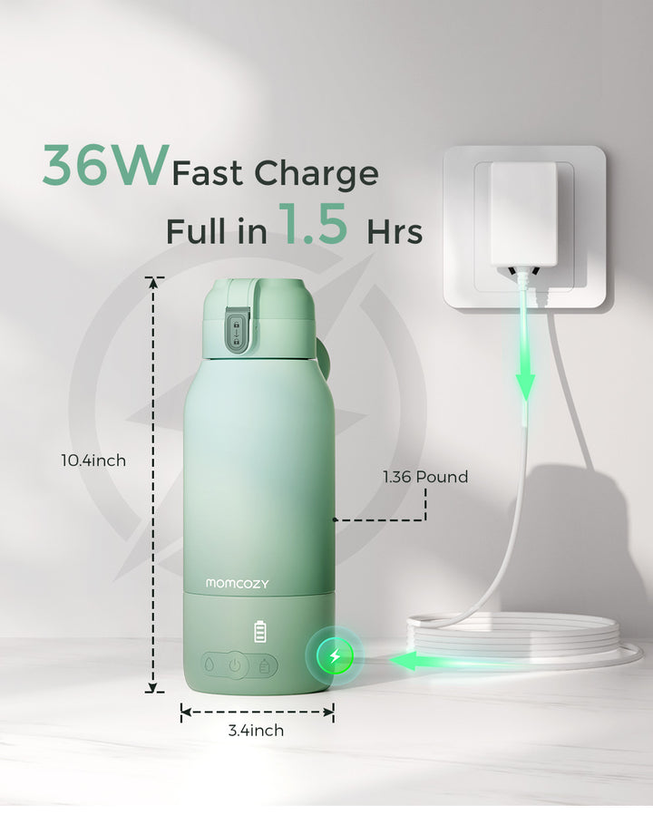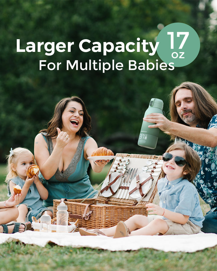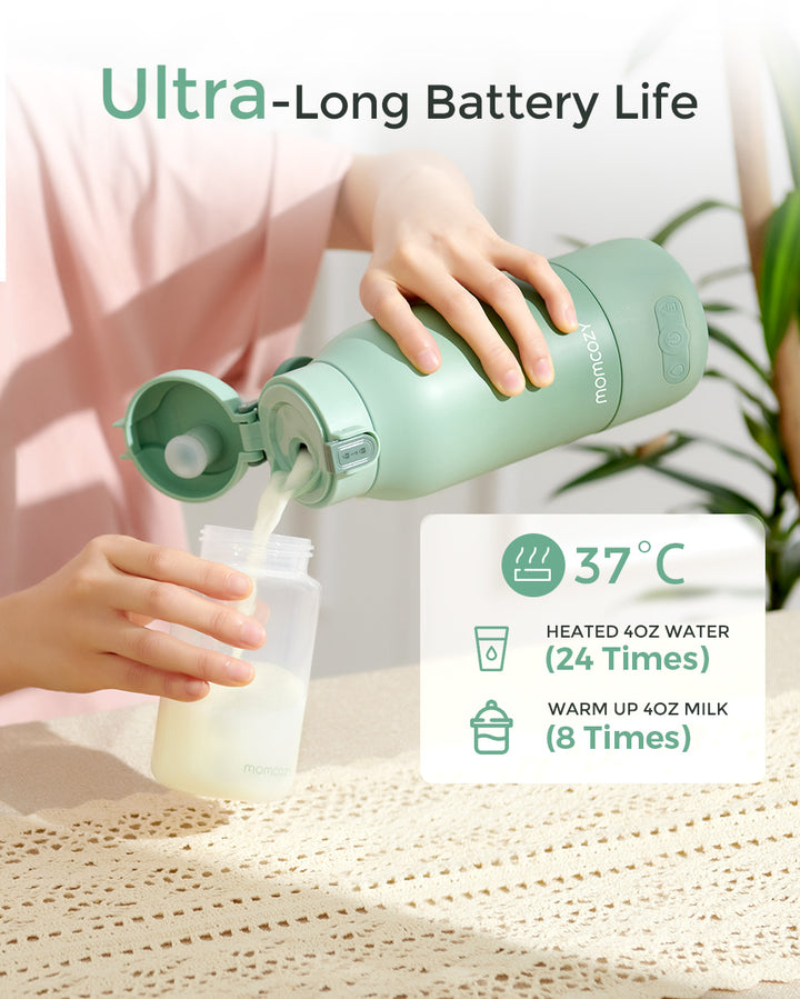 Designed for busy parents, a single charge can heat 4oz of water up to 24 times or warm 4oz of milk up to 8 times, giving you confidence for an entire day out without worrying about recharging.