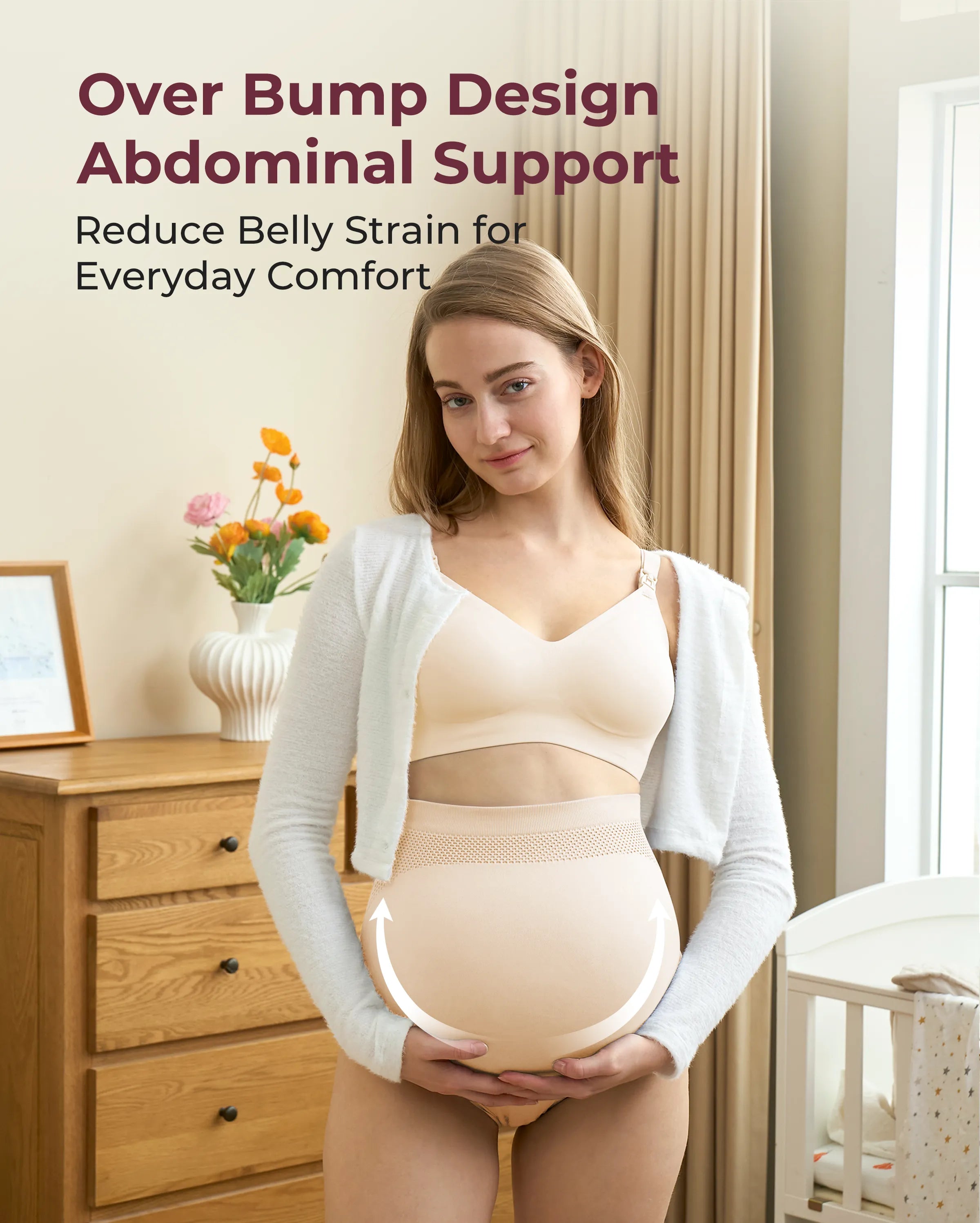 • Diseño elástico y sin costuras: Confeccionada con un tejido muy elástico, esta ropa interior de maternidad crece con tu barriga, garantizando un ajuste cómodo durante todas las etapas del embarazo y la recuperación posparto. También proporciona un cómodo soporte para la espalda.