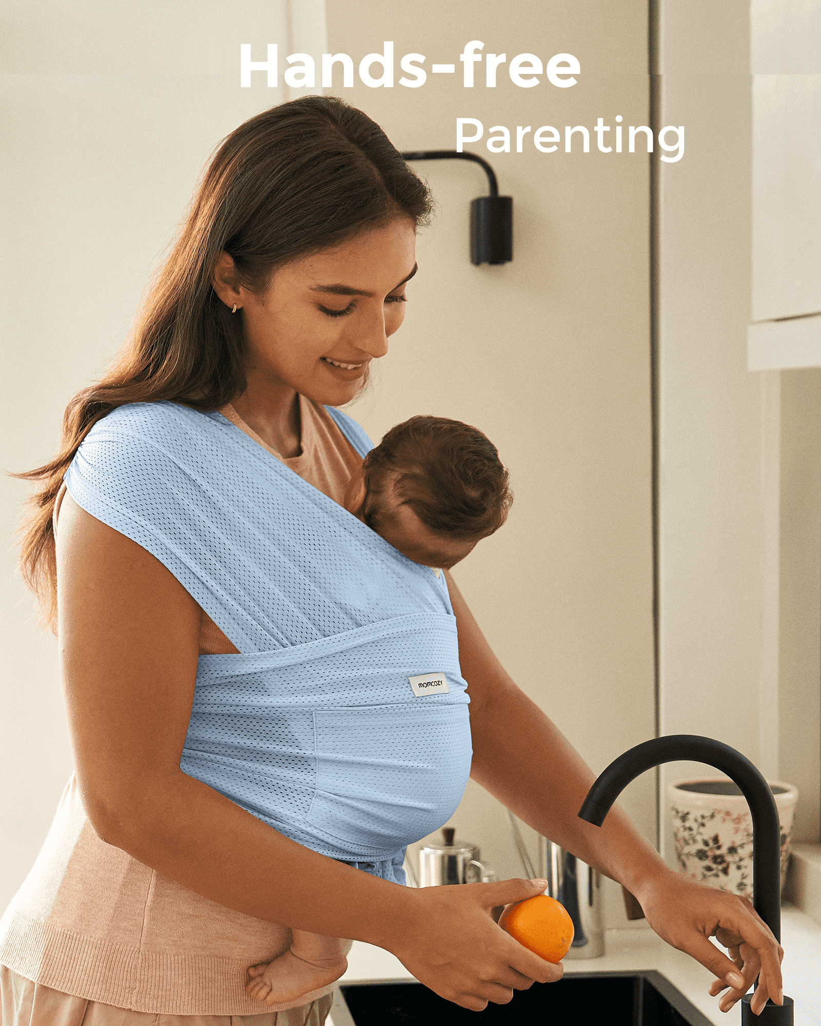 - 【Perfecta para el verano】Fabricada con tejido suave, elástico, transpirable y que absorbe la humedad, la urdimbre para portabebés Momcozy ofrece una sujeción resistente y segura. Su bebé se sentirá como si estuvieran recibiendo un abrazo cómodo mientras se mantiene fresco y comfortable.Provide último cuidado para su pequeño.