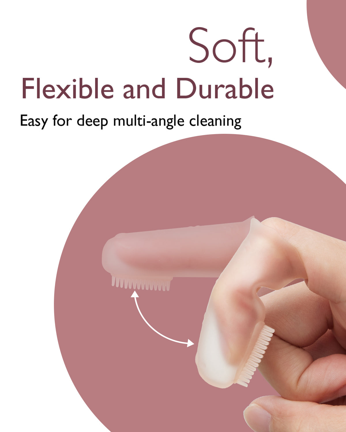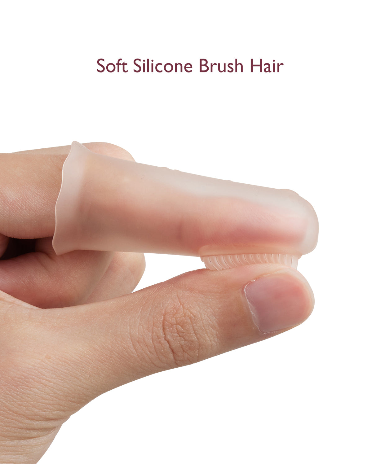 - Masaje de encías - En la parte trasera de nuestro cepillo de dedo para bebés hay un patrón elevado diseñado para masajear las encías del bebé y aliviar el dolor de dentición. Úselo después de enfriarlo para mejores resultados.