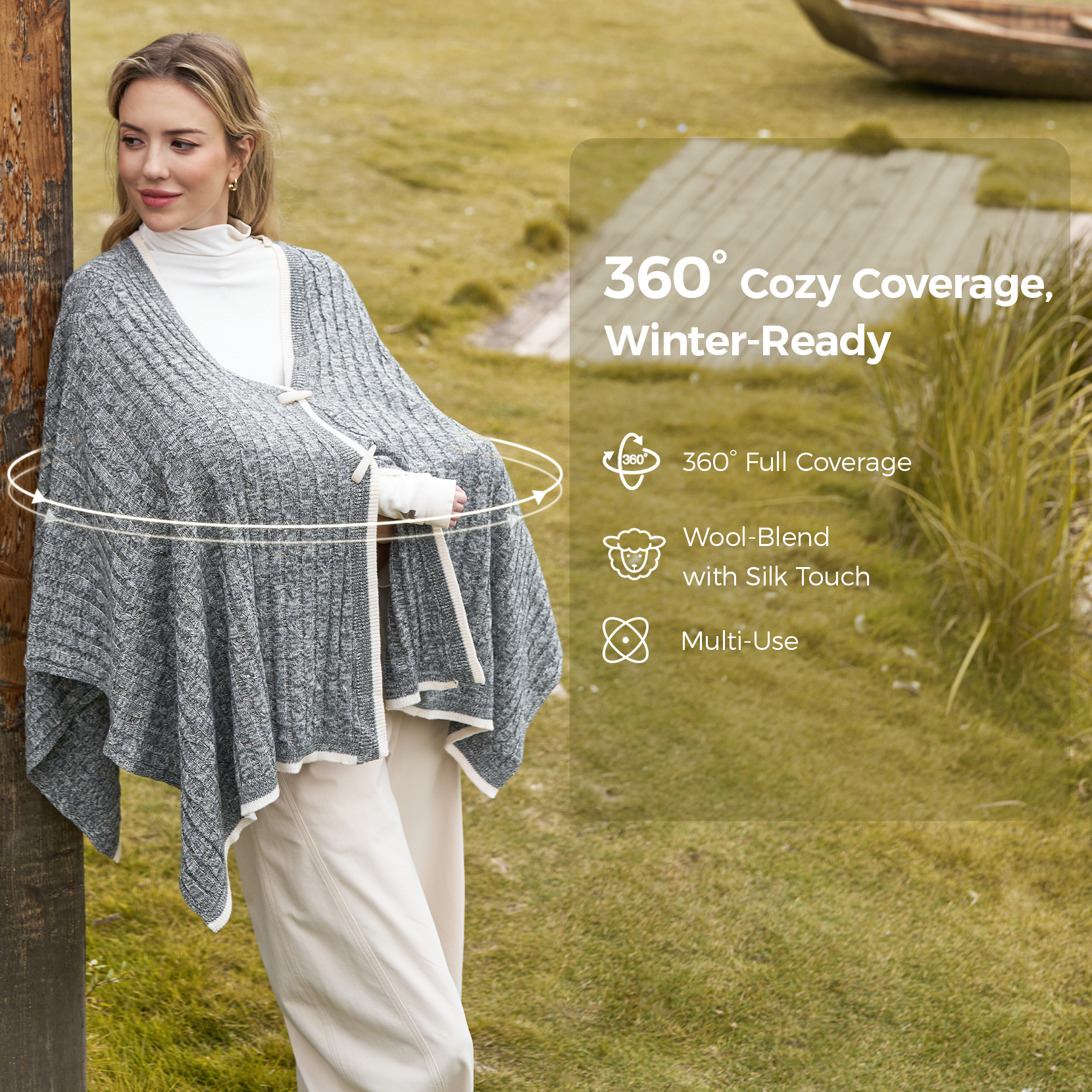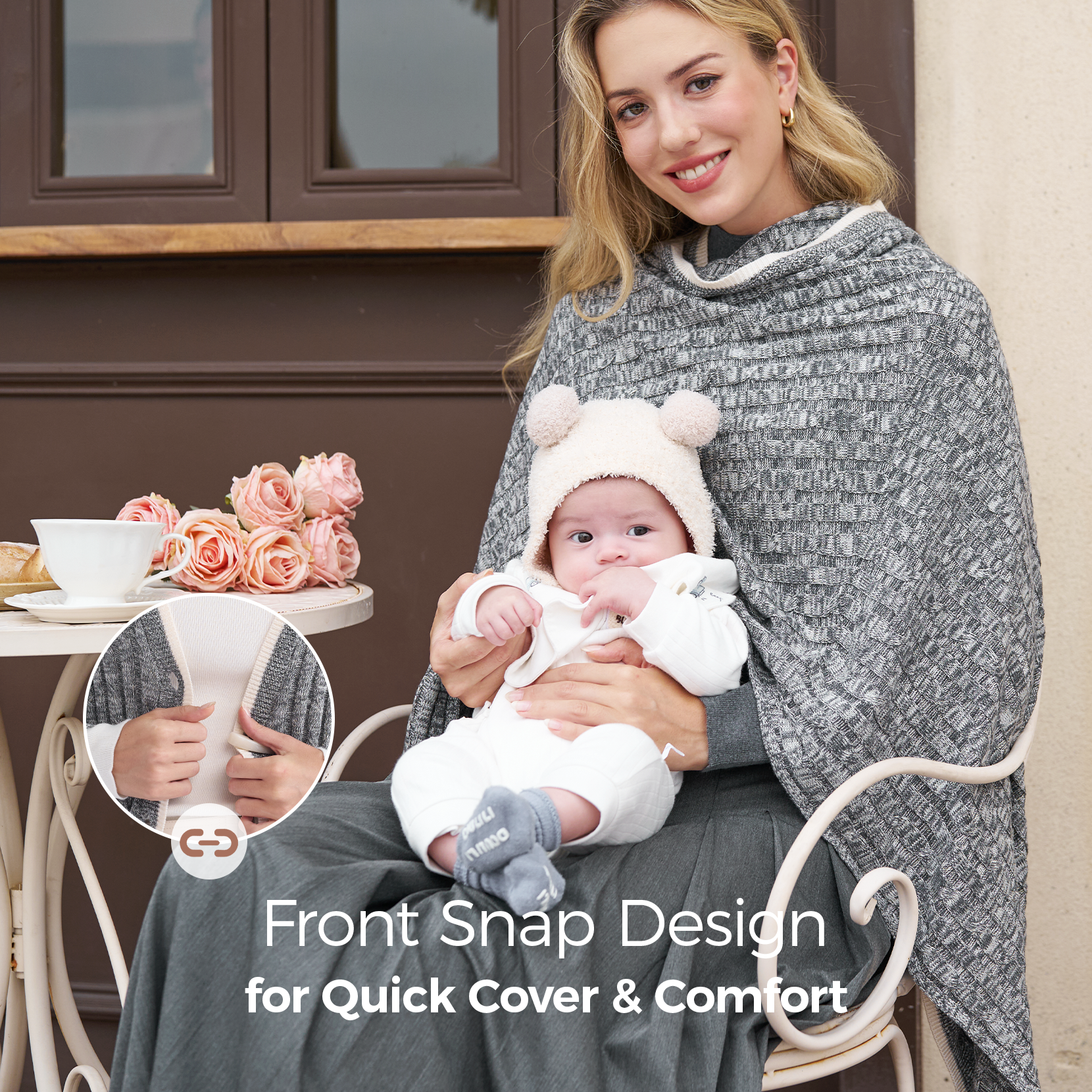 • Ultimate Winter Warmth: Crafted from a silk-touch wool-blend fabric, including 2.5% wool, this nursing cover keeps both mom and baby cozy without bulk. Perfect for cold weather, it provides warmth and comfort all day long.
