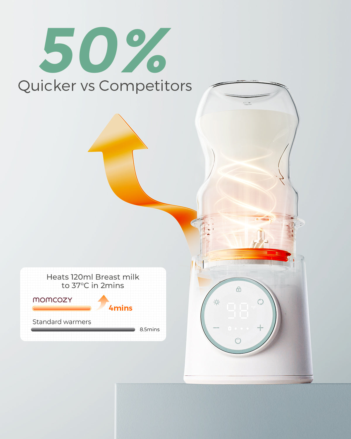 No sólo sirve para calentar la leche, este calienta biberones Momcozy también puede calentar todos los alimentos complementarios del bebé, ya estén congelados, fríos o frescos. Adecuado para más del 80% de biberones y bolsas de leche, también es un buen regalo para todos los baby showers.