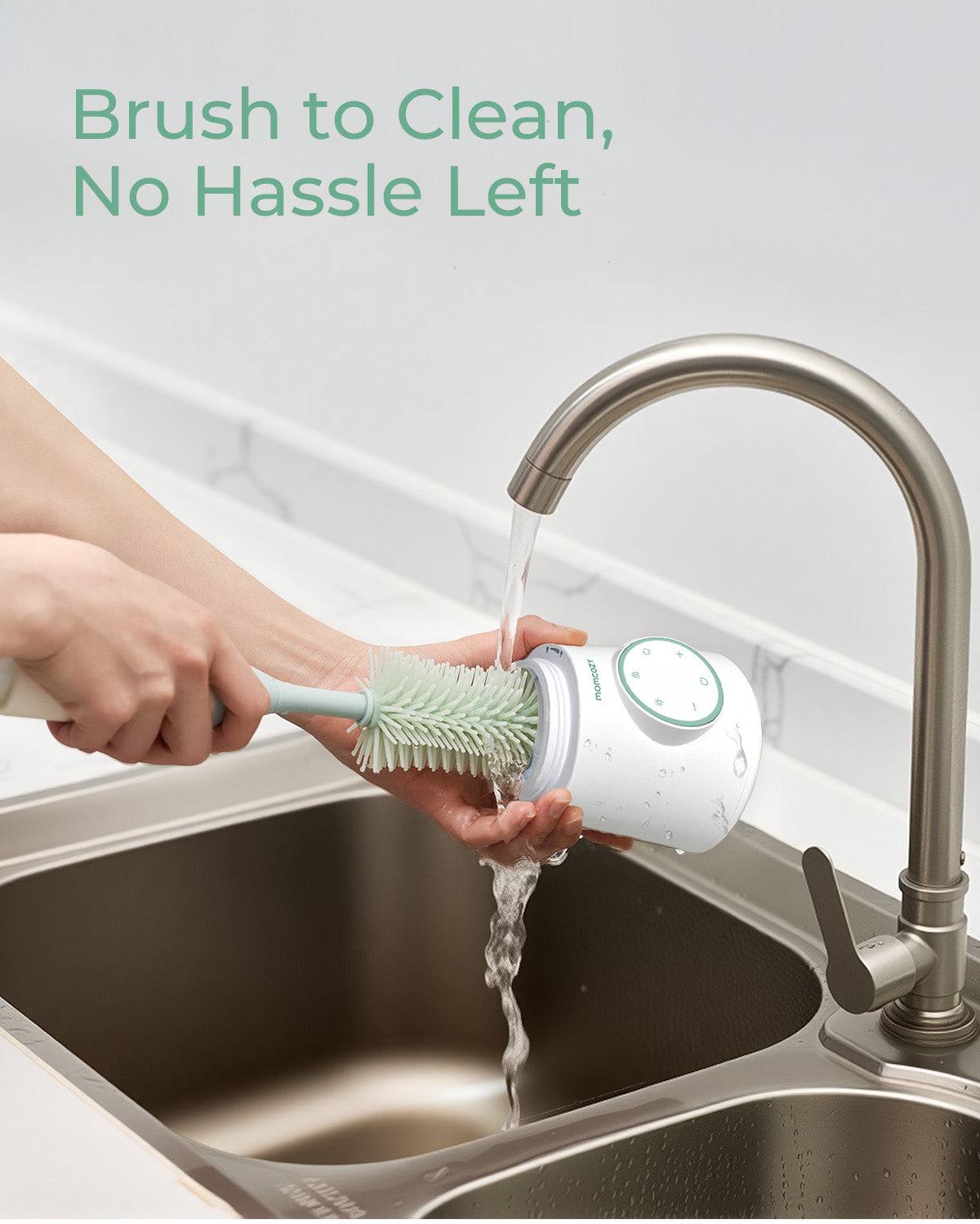 Cuando se trata de cualquier cosa relacionada con los bebés, ¡la comodidad y la limpieza son fundamentales! El calientabiberones de viaje Momcozy sólo necesita limpiar la placa calefactora de cerámica y la pieza de acero inoxidable y secarla con un paño, en lugar de tener que desmontar y sustituir montones de piezas antes de usarlo.